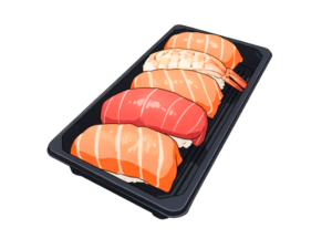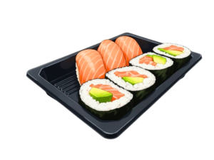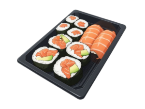 12x Nigiri ( je 3x Lachs, Thunfisch, Avocado und Ebi ) 8x Lachs Rainbow Roll 8x Thunfish Rainbow Roll 4x Gunkan ( je 2x Lachs und Thunfisch ) 8x Maki ( je 4x Lachs und Thunfisch )