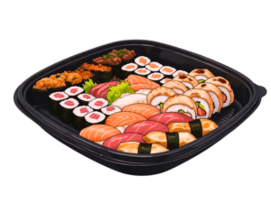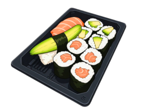 8x Pink Roll ( Lachs, Avo, Frischkäse) 8x Cali. Classic 8x spicy gekochter Lachs Maki 4x Gurke Maki 4x Lachs Maki 2x Lachs Nigiri 2x Ebi Nigiri 2x spicy  gekochter Thunfisch Gunkan