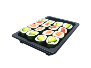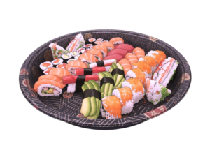 12x Nigiri (je 3x Lachs, Thunfisch, Kani, Avocado) 8x Lachs Rainbow Inside Out 8x California Classic 4x Lachs Sandwich 16x Maki (je 4x Lachs, Thunfisch, Gurke, Paprika)